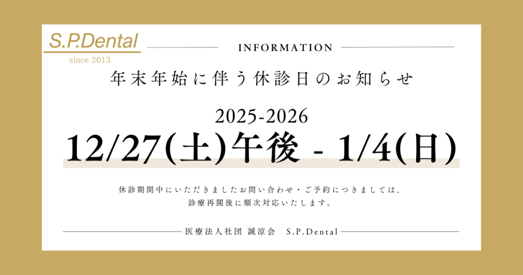 いつも当院をご利用いただき、誠にありがとうございます。年末年始の診療につきまして、下記の期間を休診とさせていただきます。 【休診期間】 2025年12月27日(土)午後〜2026年1月4日(日) 年末年始の診療につきまして、下記の期間を休診とさせていただ...